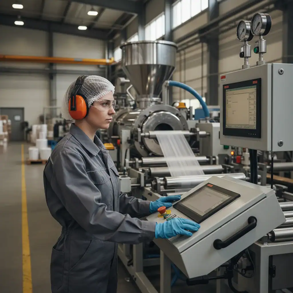 Instellen en bedienen van folieblaasmachines (extruders);